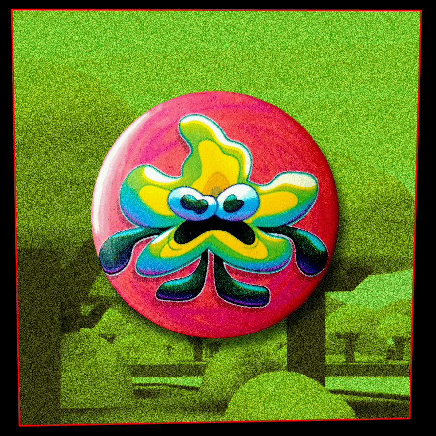 A 1.46" pin-back button of Starfy after she got turned into a three dimensional monstrosity.
