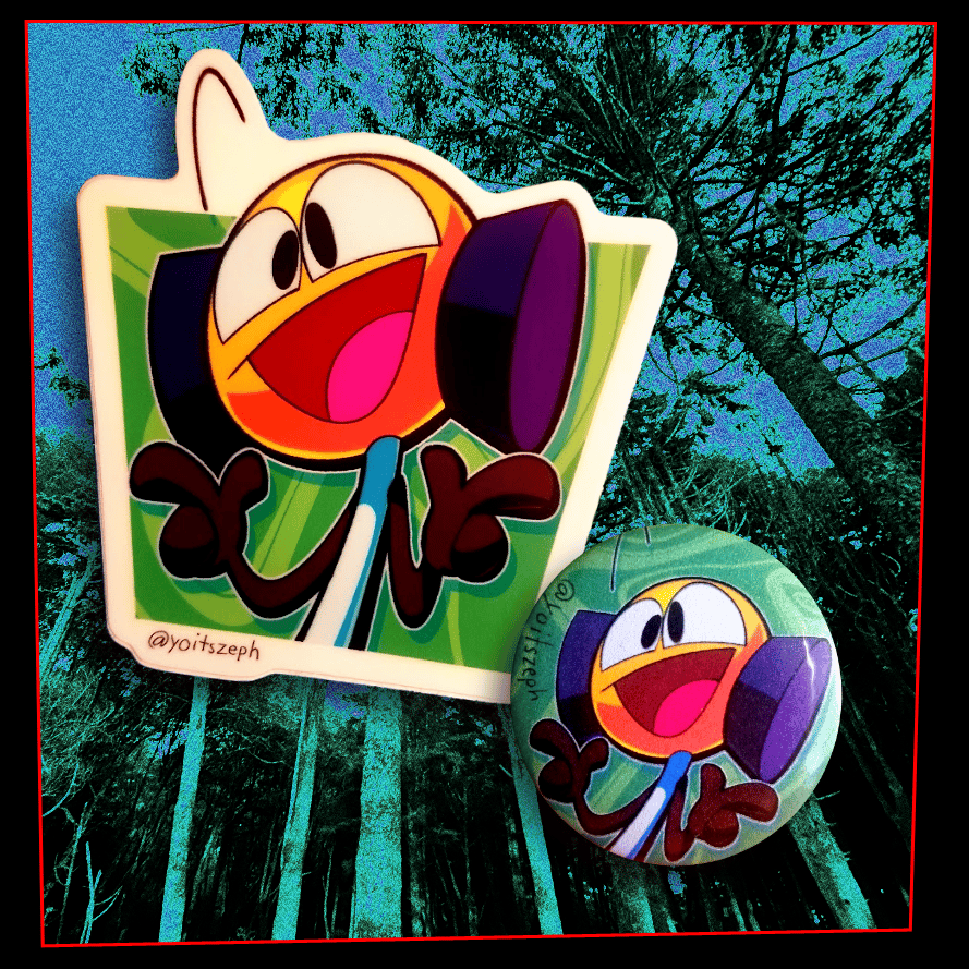 A set of one 3" x 3" sticker and one 1.46" pin-back button of your (presumably) favorite pun-loving lollipop contestant!